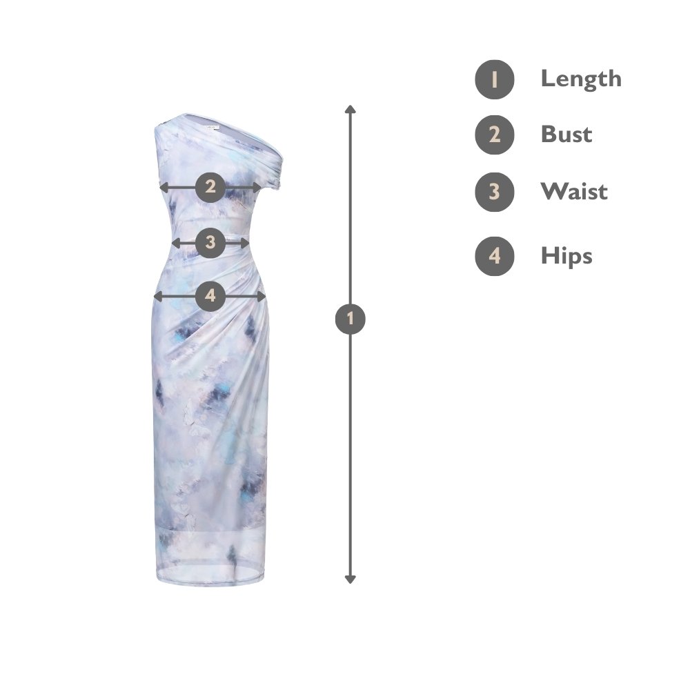 Vega is a body-skimming midi made to flatter. The asymmetrical neckline softens the shoulder line, while ruching through the waist softens the midsection for a more forgiving fit. Crafted in stretchy mesh, it stays comfortable even after long dinners and celebrations.
