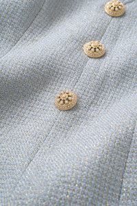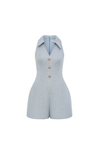 The Vienna V-Neckline Romper is a modern power piece that balances structure and charm. Designed with a bold accentuated collar and halter neckline, it draws attention to your shoulders and collarbones effortlessly. The cinched waist flatters your figure, while intricate gold buttons add a refined touch. Made from high-quality tweed for a polished finish, it’s completed with functional pockets and a clean invisible back zipper. Perfect for days when you want to look chic with minimal effort.