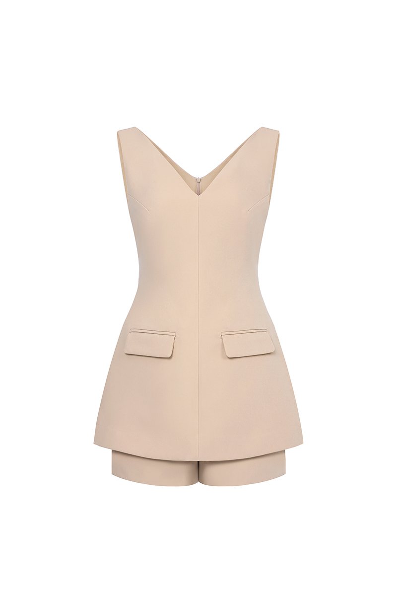 The Zarielle Padded V-Neckline Romper is designed to blend professionalism with ease, making it perfect for both the office and off-duty moments. The modest V-neckline offers a refined touch, while the clever illusion of a 2-piece instantly gives you a relaxed, yet put-together look — ideal for casual Fridays. Functional pockets add practicality without compromising style, and the invisible zipper ensures a clean, seamless finish. Complete with a padded bust for comfort and convenience, Zarielle is a polished all-in-one you’ll reach for again and again.