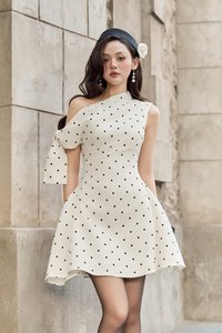 Zelie Padded Asymmetrical Mini Dress in Cream Polka